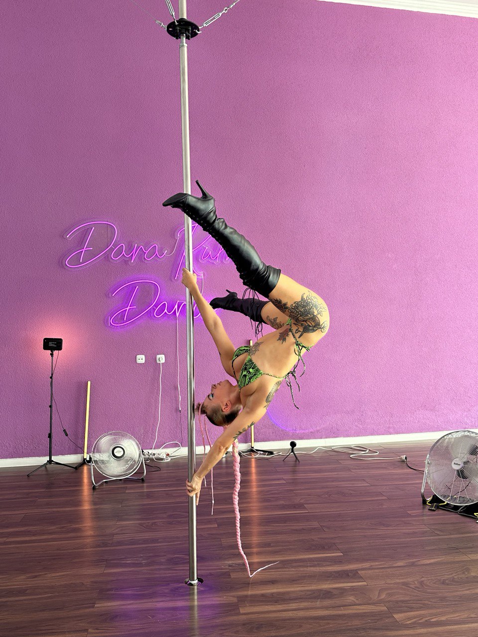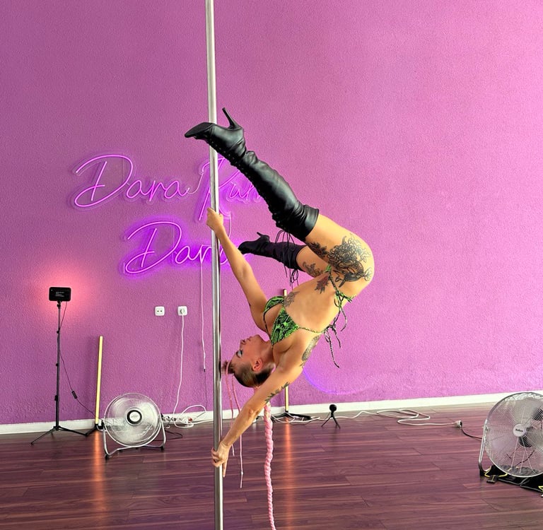 A nossa especialidade - exotic pole, dança sensual com pole. Aula com saltos durante a qual aprendemos a dançar com o pole e libertar o nosso lado sensual feminino. As nossas professoras dançam em todos os estilos de dança no pole exótico - old school, flow, hard e erótico. Comece com aulas marcadas como iniciantes ou aulas para todos os níveis. Nos grupos avançados, também combinamos dança com truques com saltos - truques exóticos - inversões, saltos, pinos, giros e outros exotic truques.